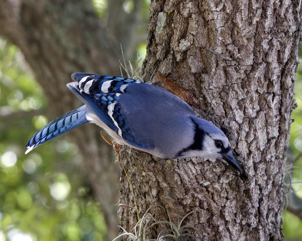 Of course, they’re not really blue. It’s just a trick of the light called a schemochrome. If you find a blue jay feather you can watch the color disappear and reappear as you roll the shaft between your fingers, changing it’s position relative to the sun. These forest defenders are high-tech.