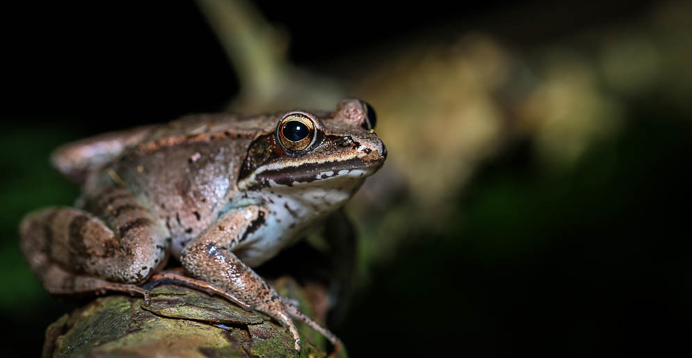 The watering hole has been silent for the last few months. Winter is a time for amphibians to lie low. Really low. Aquatic frogs hibernate on or partially buried in the mud at the bottom of ponds and lakes. Terrestrial frogs, including the wood frog, hibernate on land. Some burrow down below the frost line, but wood frogs are not adept diggers so they seek out crevices in rocks, crawl beneath a log, or just huddle in the leaf litter.  These hibernacula don’t always make for a cozy inglenook. When the temperatures drop below freezing, so do the wood frogs. But not to worry—wood frogs have what it takes to best Old Man Winter.