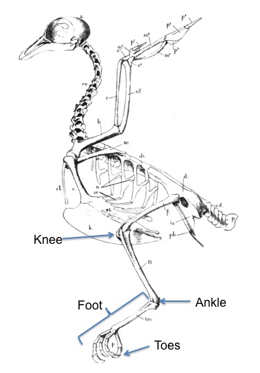 bird skeletonActually, if you think about it, it’s natural to see robins and other songbirds as dancers. For one thing, they are almost always on at least demi pointe—what you and I might call being on our tippy-toes. That’s because what we think of as the bird’s foot is actually only toes, and what we might initially think of as the knee is actually the ankle.