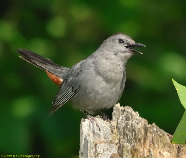 But as I scanned the underbrush looking for the source, thinking of what I might use to coax a frightened feline to come out, come out, wherever it was, I came to the happy realization that I wouldn’t be making a trip to the animal shelter after all. It’s been a long time since I heard a gray catbird (Dumetella carolinensis), and never was I more thrilled by a tune in the trees than last Sunday morning.
