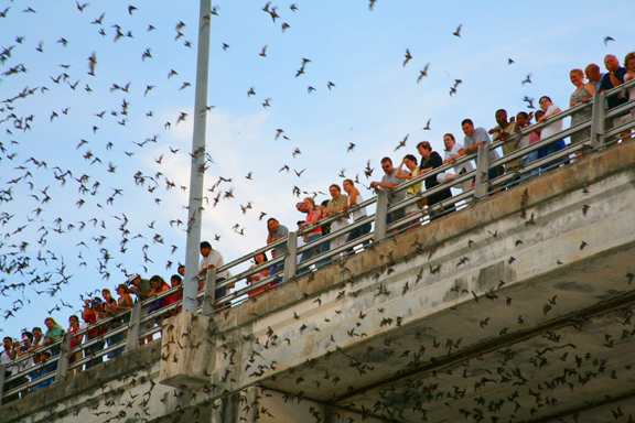 Several times in my life, I’ve had the privilege of watching, with barely contained glee, as Austin’s famous Congress Avenue bats poured out of the expansion slots below the bridge deck. With 1.5 million bats in residence, the city is home to the world’s largest urban bat colony. But the Bracken Cave colony dwarfs its city neighbor. It’s the world’s biggest, as well as the greatest known concentration of non-human mammals. Modern Americans will never have a chance to witness hordes of bison churning up the prairie or enormous flocks of passenger pigeons darkening the skies, but Bracken Cave—where it takes 4 hours for all the adult bats to stream out of the cave mouth and drift like smoke over Texas to feed—evokes some sense of what has been lost.