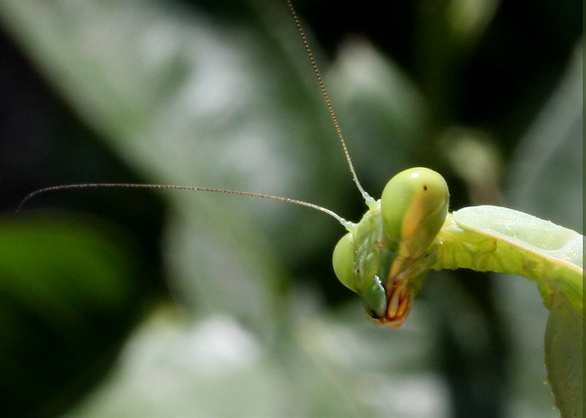 The common name derives from the front legs, which are usually folded into a position that someone interpreted as devotional. Devoted to dinner might be a more appropriate assumption. The spiked forelimbs are better suited to predation than piety, with reflexes so lightning-quick as to appear supernatural to the unaided eye. While they commonly feed on a variety of other insects, large adult mantids have been known to capture and consume hummingbirds and tree frogs. No wonder they are often mistakenly (yet accurately) called preying mantises.