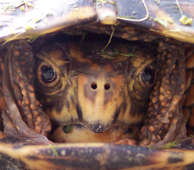 If you can’t relate, I know the eastern box turtle (Terrapene carolina carolina) certainly can. Whether the threat is carnivores or towers of cardboard boxes and a demanding career, there are times when nothing beats a little self-imposed solitary confinement.