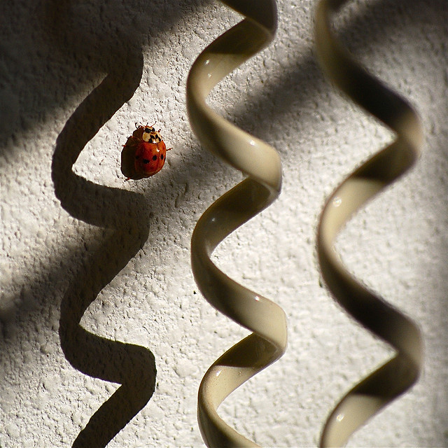 But humans aren’t the only threat this world has to offer, and there’s more than luck to that crimson coloring. Red means the same for both VW and biological beetles:  STOP! Some coccinellid species can spray a substance that’s venomous to other insects and some mammals. That’ll spoil a predator’s appetite! Or pop a ladybug in your pie-hole (after all, they do look like candy) and you’ll get a mouthful of alkaloid toxins and a bellyache to remember. This kind of learned aversion is called aposematism, and it’s one of several chemical warfare strategies employed by the insect nation against each other and all other comers. Sometimes, I guess, polka-dots are just a ploy.