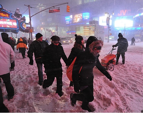 times square blizzard by Asterio Tecson ccSee for yourself—next time the Weather Channel predicts a cold front, with or without a “wintery mix,” ask yourself if the people peeking out from fleece hoodies, swaths of scarves, turned up coat collars, and balaclavas as they hunch toward the warmth of home look more like bears… or turtles.