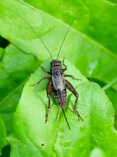 Field crickets (Gryllus spp.) establish the beat with their forewings, kind of like a finger-snap that varies from cool to hot depending on the atmosphere.