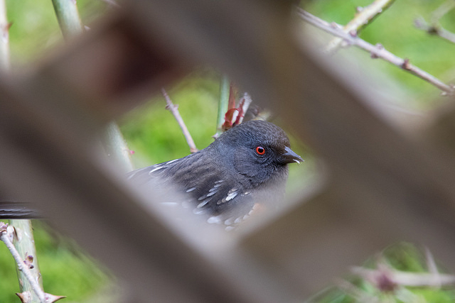 When it comes to choosing a home base, the Easterns and Spotteds will always opt for a ground-floor unit, if available, ideally tucked in next to a log or of clump of grass to provide some privacy, but they’ll tolerate the higher perches (shrubs) preferred by the Californias, Canyons, and Green-taileds. The Aberts’ are the only Towhees who like to live in a tree-top high-rise. Not much is know about where the Collareds and White-throateds homestead because they’re a secretive bunch who’ve put down roots far from the limelight’s glare, in the more rural setting of Mexico’s mid-to-high altitude subtropical and tropical pine-oak forests. They’re a rare and lucrative shot but too remote for run-and-gun photography.