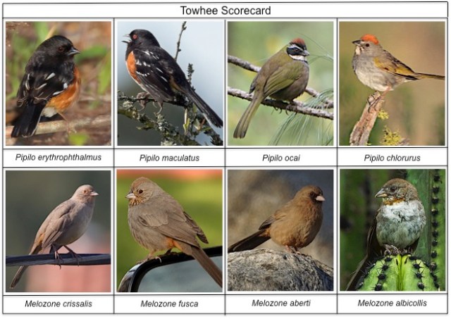 First Rule of Papping: Ya can’t tell the players without a scorecard! It also helps to know the aliases they use to create confusion and avoid detection. See, for a long time all the Towhee’s identified as Team Pipilo. Several years ago, however, about half of them left (were removed, actually) to form Team Melozone. Maybe the rift was media-created (fake news, so sad), or maybe the less flamboyant Towhees felt overshadowed by their more colorful and fashion-forward cousins… who knows? Towheestas, as their fandom are known, love to argue over the distinctions between and relative merits of the two tribes, as well as who should be a P and who definitely qualifies as an M.