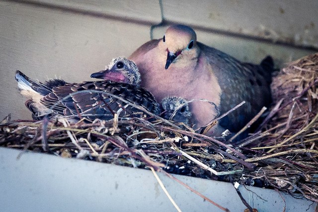 Plus, doves are rarely alone and don’t seem to have much time in their lives to feel lonely. The whole clan is known to grow up fast (reaching sexual maturity at about 85 days old) and then pair up into monogamous ’til-death-do-we-part couples who take the directive to be fruitful and multiply seriously… as in up to twelve chicks in a single season serious (six broods of two chicks each). Both Mom and Dad are doting, active parents who share grocery shopping and child care equally, rarely leaving their babes unsupervised by at least one adult at all times.