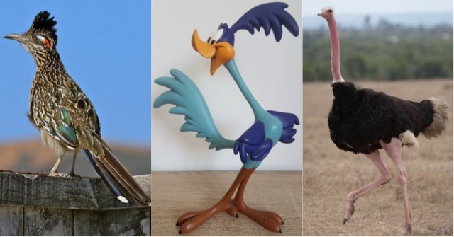 Moreover, I think Warner Brothers animator Chuck Jones must have grabbed the wrong field guide when he started to sketch, because his roadrunner looks more like an ostrich (Struthio camelus) to me than the iconic avian of the American Southwest. I think you’ll agree that a side-by-side line-up provides plenty of evidence to back up that statement.