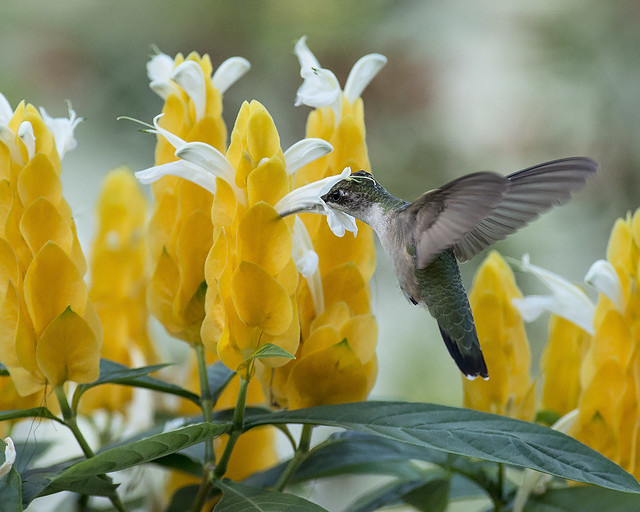 This isn’t using a thermal to save energy, like vultures, ravens, petrels, and other long-winged birds do. That’s soaring. Hummingbirds move their wings in a figure-eight pattern at over 50 beats per second, allowing them to stop on a dime or adjust their position up, down, forward, or backward. That frenetic rhythm is also creates the humming noise that’s the source of their common name.