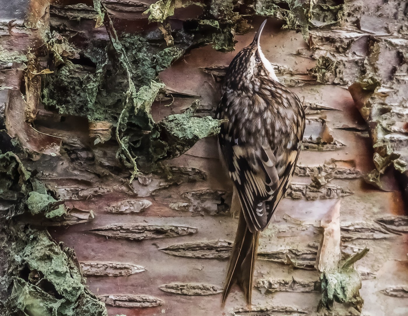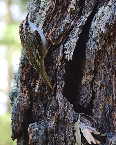 Until the late 1800s, little was known about this petite pine-cone of a bird. Creepers aren’t the easiest species to spot, especially during verdant months.  Their cryptic plumage of birch, cedar, maple, and walnut browns can masquerade as the bark on which most of this bird’s life is lived, tacked in place by strong toes and sharp nails. Camouflage patterns of sun and shadow created by leafy branches only adds to the illusion.
