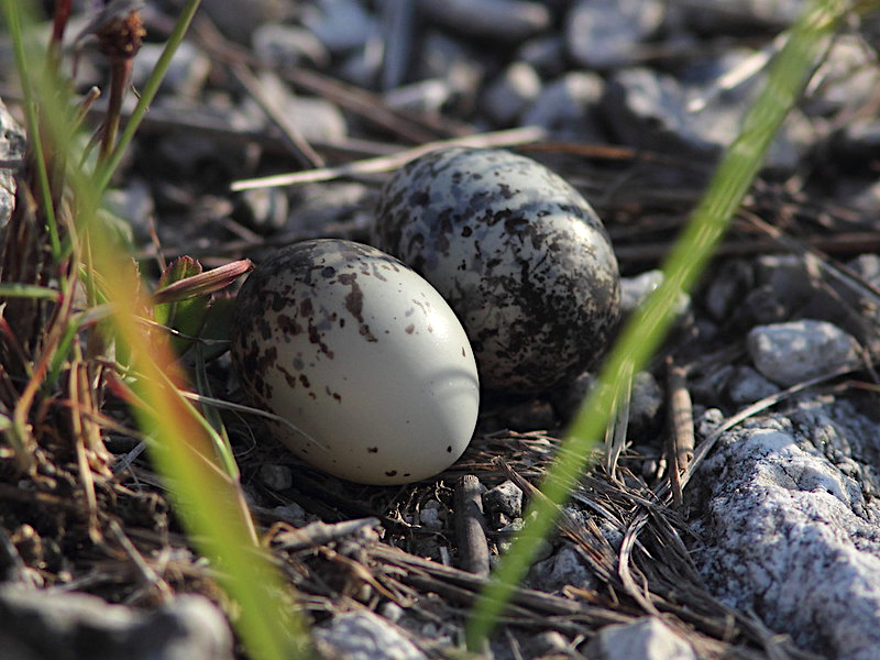 Approximately three weeks later two semi-precocial offspring push out of their shells and into the world with eyes wide- or half-open. Once their down dries and they’ve taken on some fuel, they’ll start taxiing up and down the runway but no takeoffs quite yet. As soon as the stop to rest they’ll fade into the background again.