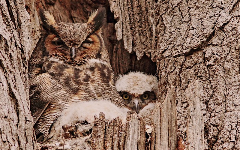 The sight of this hunter has me hopeful the park will soon be home to a new family of GHOs, a sentiment I doubt is shared by the squirrels, cottontails, opossums, and webbed-footed residents. It’s not that I harbor ill will towards any of the wildlife who call this urban oasis home. It’s just that great horned owlets are cute all get-out, a cross between a cotton ball and a giant dust bunny with enormous dandelion yellow eyes under an incongruous scowling brow. Who could resist such a winning combo of fierce and fluffy?