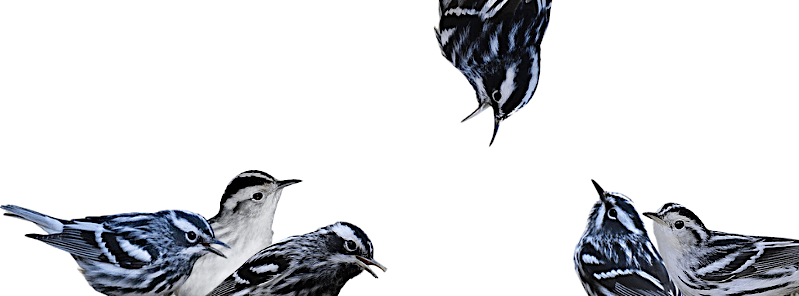 Hey all you Blueberry Hill Jacks and Jills! Check out this crazy crooner and his backup chicks with their keyboard-themed threads and choreographed grooves! Good Golly, Miss Molly, this nifty summer act is a blast! Give the Black-and-White Warblers (Mniotilta varia) a spin and they’re certain to lock in a spot on your personal Top 40 jukebox.