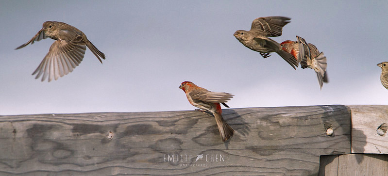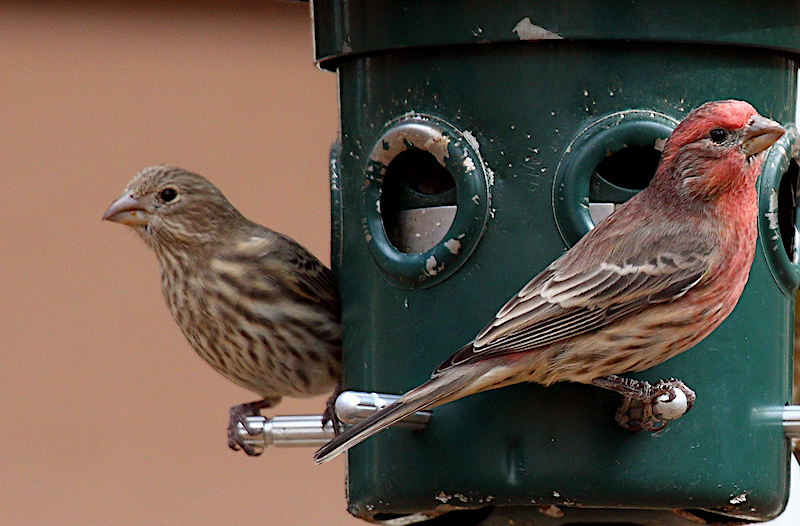 The metaphorical wheels that keep the Conestogas moving and ensures these pioneers’ success is community support. While House Finches are willing and able to displace other species, including the purple finch (Haemorhous purpureus) and the house sparrow (Passer domesticus), they’re not territorial with their own kind, even during the breeding season when other species jealously guard space, mates, and food. Rather, they’re gregariously social, at times forming flocks of over a hundred individuals.
