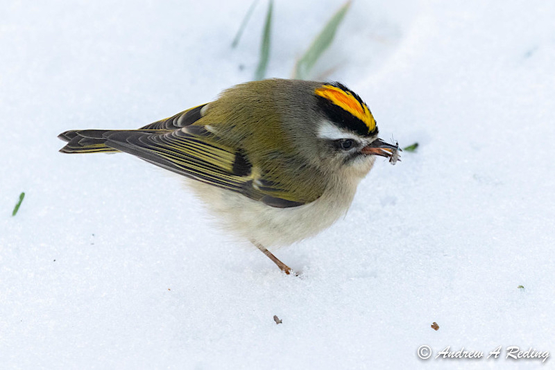 Other species handle the absence of insects by switching to more readily available fruits and seeds, taking advantage of the high calorie provisions found at feeders stocked by backyard birdwatchers. But you won’t find any Kinglets hanging out on easy street. Even though they must ingest two to three times their weight in insects each day to maintain their internal temperature of 110°F (43°C) and thwart hypothermia, foraging at a fever pitch to achieve that goal, it’s bugs or nothing.