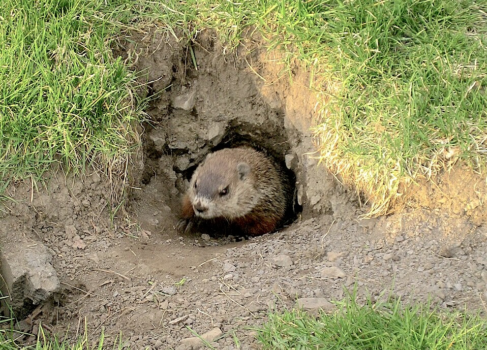 You read that right… groundhog burrows include chambers that are used during hibernation specifically and exclusively as powder rooms. There’s no flush toilet, of course, so when the chamber is full the resident will seal off that chamber with the soil excavated to create a new bathroom chamber.